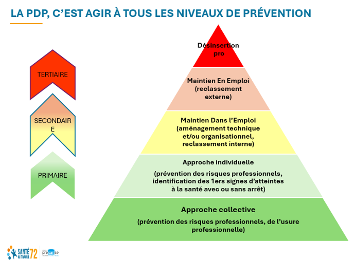 - La coordination des acteurs maintien à travers une présentation du fonctionnement de la cellule Prévention de la Désinsertion Professionnelle (PDP) et un cas pratique, présenté par Madame Audrey Jeanne de Santé au Travail 72.