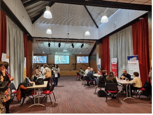 Dans un deuxième temps, tous les acteurs ont été invités le 4 décembre à Angers à un forum d’interconnaissance afin de se rencontrer et d’aller plus loin dans les échanges et le partage de pratiques. Plus de cent personnes ont répondu à l’invitation, illustrant à la fois un besoin fort d’interconnaissance et une dynamique territoriale bien réelle. Cet évènement a mobilisé une diversité d’acteurs, notamment une quinzaine d’exposants mobilisés et fortement engagés pour la réussite de cette action : la MDA, l’ADAPEI, l’ASEA, le CREHPSY, le SMIA, le STCS, la MSA, l’ARPS et l’APAHRC, les acteurs du service public de l’emploi (France Travail, Cap emploi et les Missions Locales), des acteurs de la formation comme l’AFPA, et des acteurs du monde économique (UNEA, CCI, BGE, IPOLAIS).