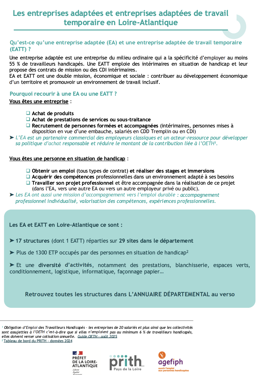 - Annuaires départementaux des entreprises adaptées et EATT et des ESAT