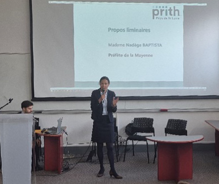 - Madame Nadège Baptista, Préfète de la Mayenne a ouvert le séminaire en compagnie de Madame Caroline Gény, Déléguée Régionale de l’Agefiph Pays-de-la-Loire qui a présenté quelques chiffres départementaux du maintien issus du dernier tableau de bord du PRITH.